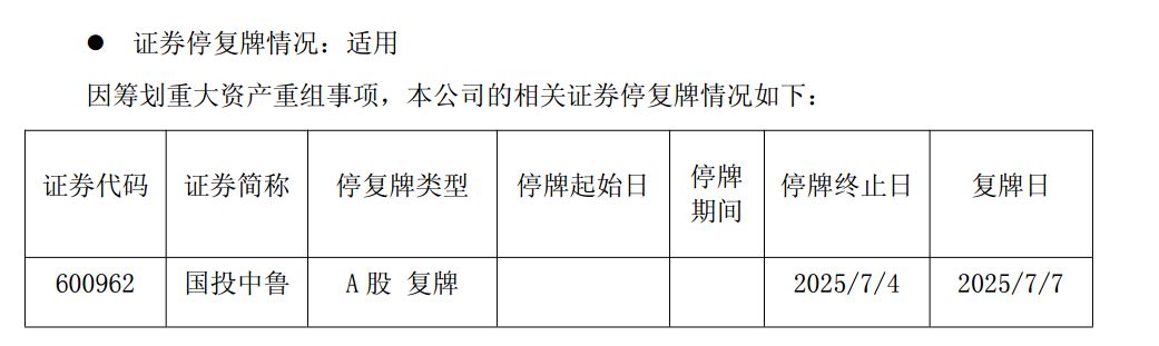 在披露交易预案后,国投中鲁股票将于7月7日开市起复牌,停牌前国投中鲁股价陷入调整,6月累计跌9%。国投中鲁提示,本次交易尚需提交公司董事会、股东会审议,并经有权监管机构批准后方可正式实施,最终能否通过审批尚存在不确定性。