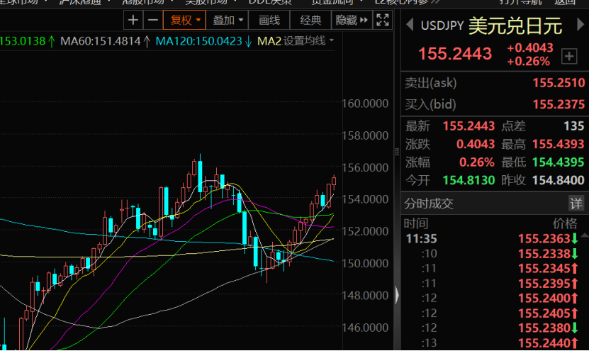 外汇市场再现异动!上午10点半后,美元兑日元汇率突然直线拉升,日元走低约80点,一度触及155.43高位。此番波动源于日本央行维持0.25%的基准利率不变,尽管符合预期,但其政策指引却超出市场预料。