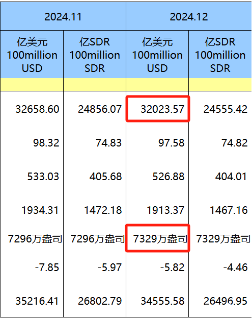 2025年1月7日,国家外汇管理局披露了最新的官方储备资产数据。截至2024年12月末,我国外汇储备总量为32024亿美元,环比上月下降了635亿美元,降幅约为1.94%。与此同时,黄金储备量持续攀升至7329万盎司,较上月增加33万盎司。