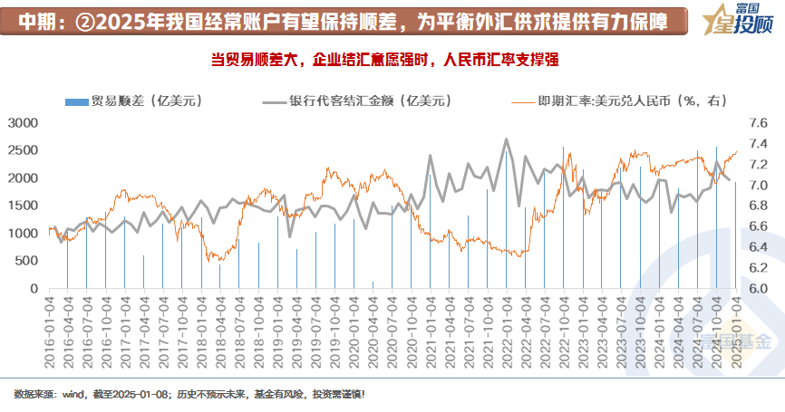 2. 短期交易层面:不同货币的供需格局。从短期交易的角度来看,当离岸市场上人民币需求增加、美元需求减弱时,人民币会相对强势;反之,则承压。需求的底层逻辑是趋利性,即两国利差和贸易顺差下的换汇需求。投资者往往会通过借入低利率货币,投资于高利率货币进行套利,这种交易行为会对汇率产生影响。