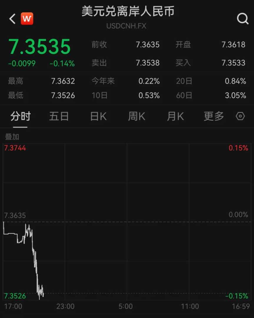 截至1月13日上午10点左右,美元兑离岸人民币汇率已报7.3535元,成功收复7.35关口。