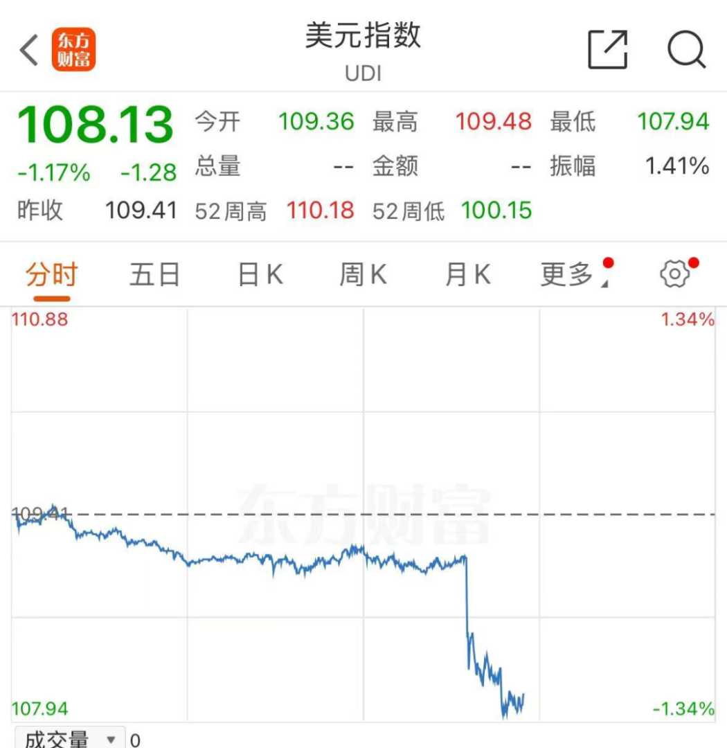 1月20日晚间,金融市场风云突变,美元指数在盘中遭遇重挫,截至发稿时,其跌幅已经超过了1%,这一突如其来的变动引发了市场的广泛关注。
