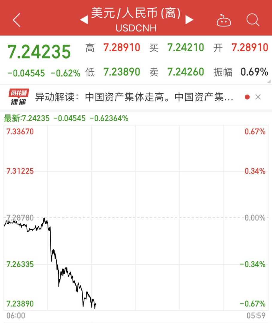 人民币汇率盘中突破7.24关口,积极因素集聚回升