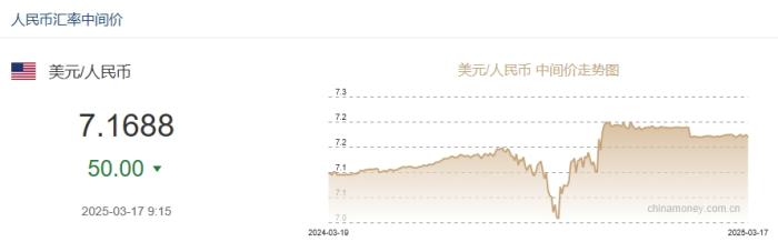 2025年3月17日人民币汇率中间价上调50个基点