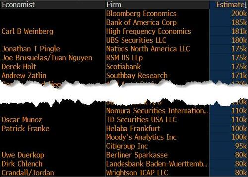 机构预测差异大,与非农前瞻指标差异巨大有关: