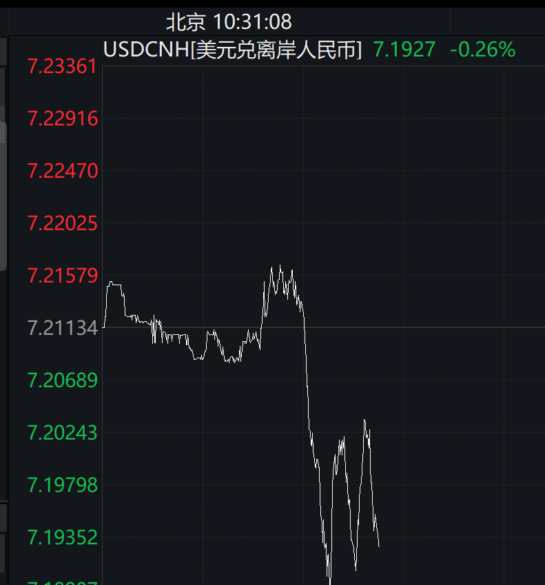 截至5月5日10:31,离岸人民币对美元升破7.20关口,为去年11月以来首次,日内涨逾130点,彰显人民币汇率的强劲态势。