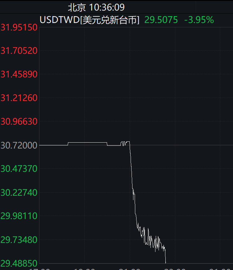 同时,新台币也迎来大涨,美元兑新台币盘初跌破30大关,报29.50,日内跌3.95%,创下2023年2月8日以来新高。