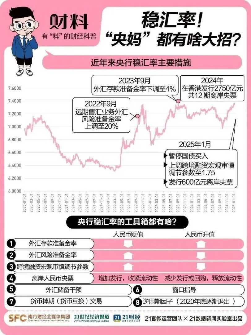 央行多次出手稳汇率。自2024年以来,央行已多次就“稳汇率”发声,强调保持人民币汇率基本稳定的目标不会改变,并将继续采取措施增强外汇市场韧性,稳定市场预期。