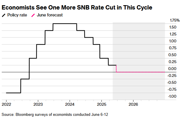 瑞士央行官员或将该国疲软的CPI增速作为连续第六次降息的理由,上月瑞士通胀率自2021年初以来首次转为负值。同时,经济学家预测今年通胀率年均仅为0.3%,2026年也仅有0.6%。