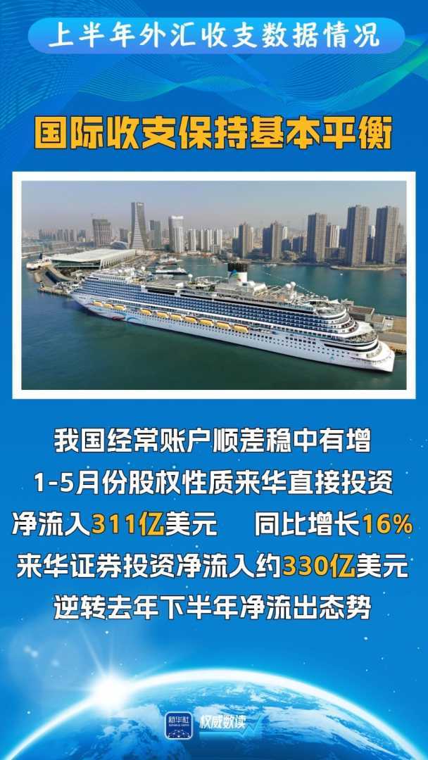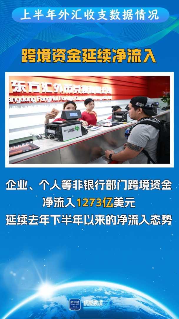 最新外汇数据显示,上半年我国跨境资金净流入1273亿美元,二季度环比增长46%,跨境贸易和投融资活动保持活跃,外汇市场表现强劲。