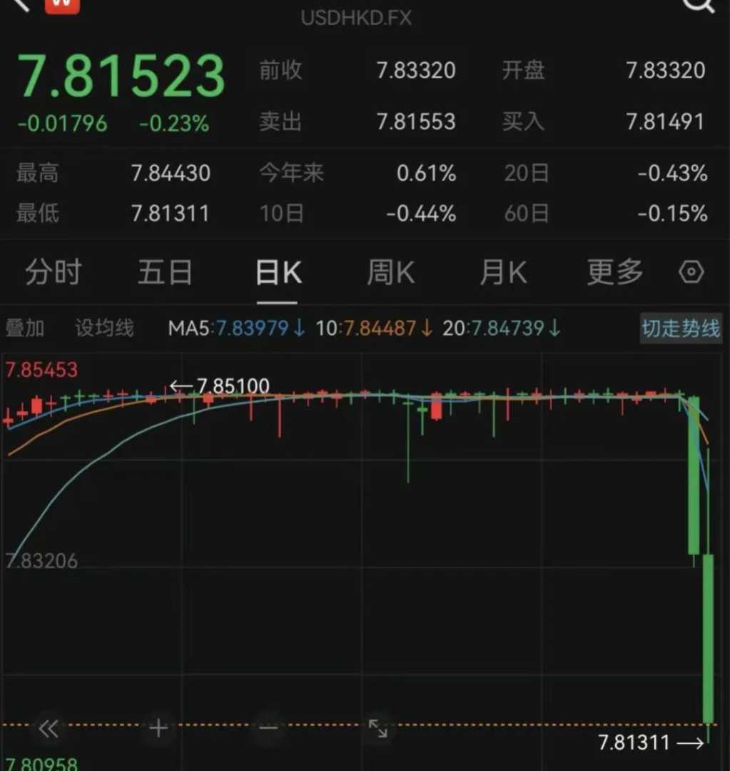 港元对美元汇率近日持续上涨,突破多个关口。香港金管局近期接连买入港元以稳定汇率,今年以来已数度干预外汇市场。市场走势受美联储货币政策、美元利率及全球金融市场等多重因素影响。