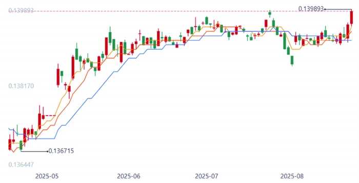 8月25日,在岸人民币对美元汇率强势拉升,开盘即升破7.18、7.17两个关口,报7.1685;随后又连续升破7.16和7.15两个关口;截至16时30分收盘,报7.1517,较前一交易日收盘价上涨288个基点,创2024年11月以来收盘价新高;日内最高触及7.1480,创下近一个月来盘中新高。