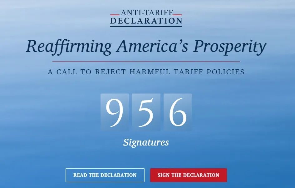 截至美东时间4月19日晚,已有956位经济学家郑重签署这份“反关税宣言”,共同表达对美国关税政策的不满。