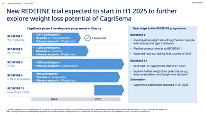 CagriSema被诺和诺德寄予厚望,并在2024年年报中置于核心位置。为了挽回信心,诺和诺德正计划开展新的临床。