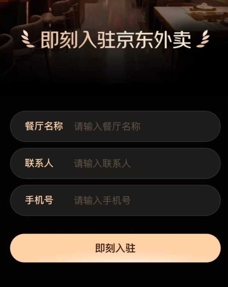 记者看到,点进京东的招募链接后,需要填写餐厅名称、联系人和电话内容,即能点击立刻进驻。