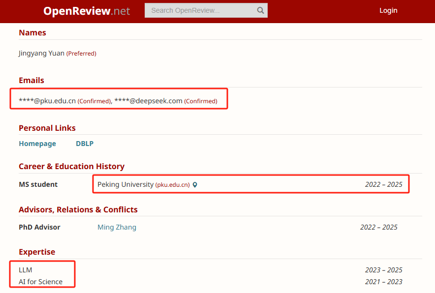 DeepSeek创始人梁文锋位列论文作者倒数第二,其他研究人员来自DeepSeek、北大和华盛顿大学。第一作者袁景阳在DeepSeek实习期间完成了这项研究,他目前为北京大学硕士研究生,研究领域包括大型语言模型和人工智能在科学中的应用。