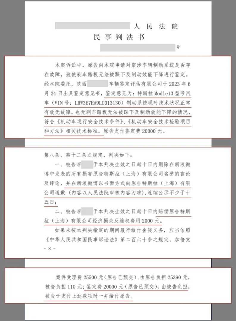特斯拉“刹车失灵案”一审判决,西安女车主名誉侵权需赔偿