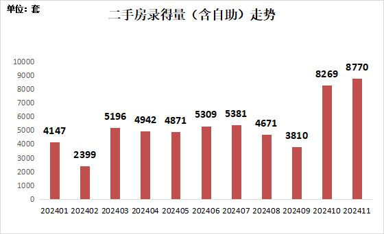 据深房中协最新数据显示,2024年11月,深圳市二手房市场持续升温,录得量达到8770套,环比增长6.1%,同比增长高达103.7%,创下近46个月新高。这一增长趋势得益于楼市优化政策的密集出台,有效提振了市场信心。