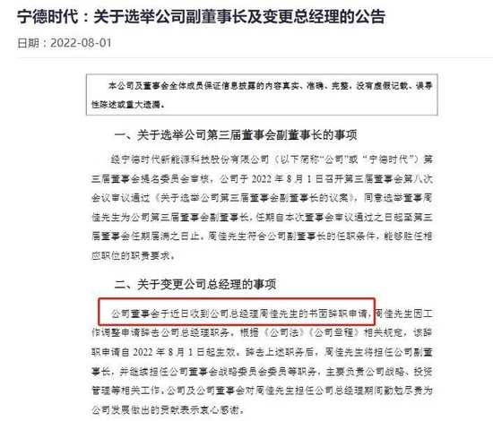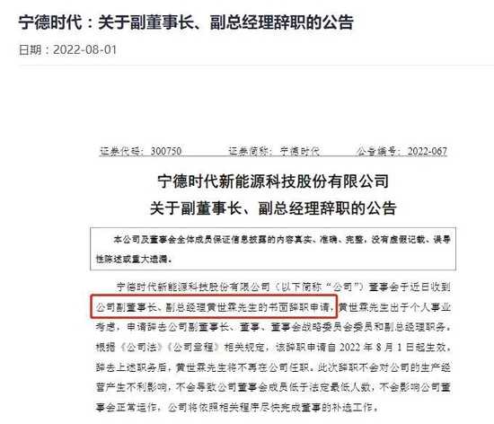 宁德时代副董事长黄世霖辞职,新能源产业战略协同受关注