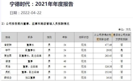 黄世霖,1967年出生,合肥工业大学学士,拥有丰富的行业经验和卓越的领导能力。自2015年起,他担任宁德时代的副董事长和副总经理,并在2021年从公司获得了高达263.45万元的薪酬,平均月薪为21.95万元。此外,黄世霖还持有宁德时代2.59亿股股份,占公司总股本的10.61%,其一致行动人合计持有公司股份占公司总股本的0.08%,黄世霖及其一致行动人合计持有公司股份占公司总股本的10.69%。