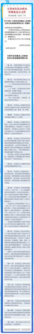 天津市住房公积金管理中心发布《天津市灵活就业人员参加住房公积金制度管理办法》,将于2024年12月25日起实施,灵活就业人员提取公积金政策参照在职职工执行。