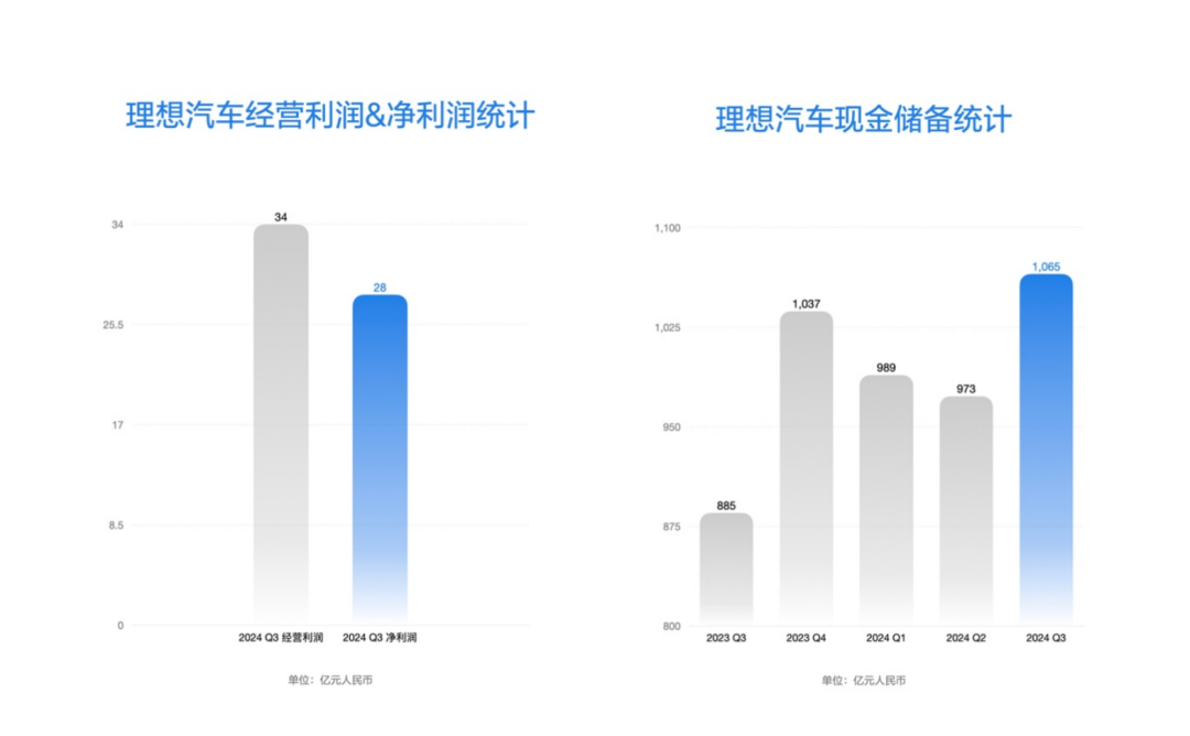 在现金流方面,理想汽车在2024年第三季度经营现金流达到110亿元,现金储备更是高达1065亿元。