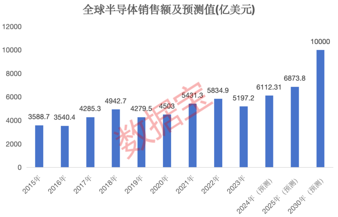 从更长时间跨度来看,2015年全球半导体销售额为3588.7亿美元,而到了2023年,这一数字已增长至5197.2亿美元,期间复合增速为4.74%。若未来能保持8%的增速,全球半导体行业市场规模将实现快速增长。