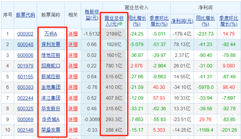 2024年前三季度A股营收前十房企(截至10月30日20∶40)来源:东方财富