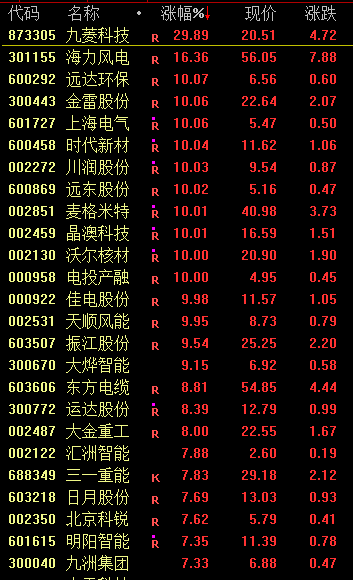 风电股同样表现出色,天顺风能、时代新材、振江股份等个股涨停。