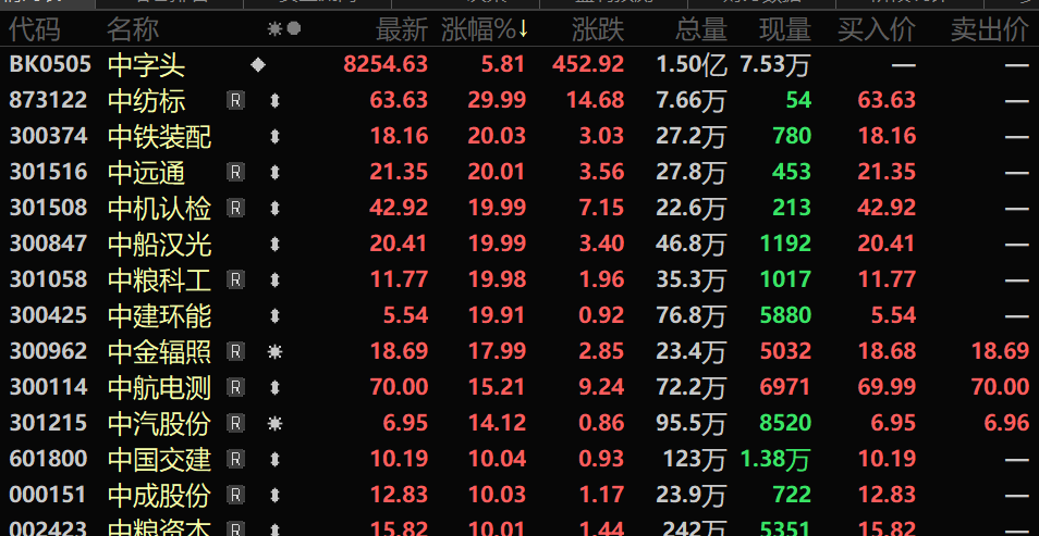 业内人士分析,中字头等高股息资产凭借稳定的分红记录和较低的估值,成为机构开展互换便利的首选。同时,国资委明确研究将市值管理纳入中央企业负责人业绩考核,这也有利于提升“中字头”股票的估值。事实上,昨日市场已有所反应,“中字头”个股掀起涨停潮,中国中铁、中国铁建、中国建筑等10余股强势涨停。