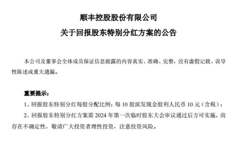 此外,顺丰控股也于10月10日晚间发布公告,表示将启动公开发行境外上市外资股(H股)股票并在香港联交所主板挂牌上市的相关工作。同时,公司还计划对全体股东实施一次性的特别现金分红,预计分红总额约为48亿元。