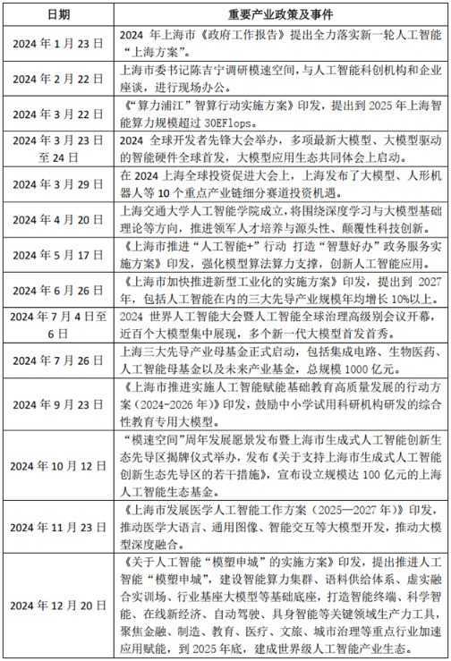 2024年上海人工智能大模型产业重要里程碑及政策动向