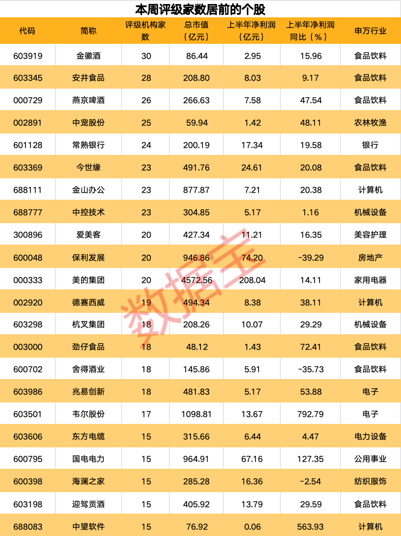 本周机构最新关注个股名单揭晓。