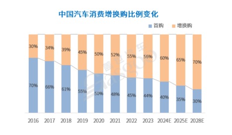 汽车消费结构不断优化,增换购逐渐成为存量市场增长的主要动力。盖世汽车研究院数据显示,2024年中国汽车增换购比例约为60%,在以旧换新政策支持下,2025年增换购比例有望提升至65%以上。随着居民生活水平提高,中高等收入群体增加,居民消费升级需求强烈,中型及以上车型有望成为车市核心增量市场。