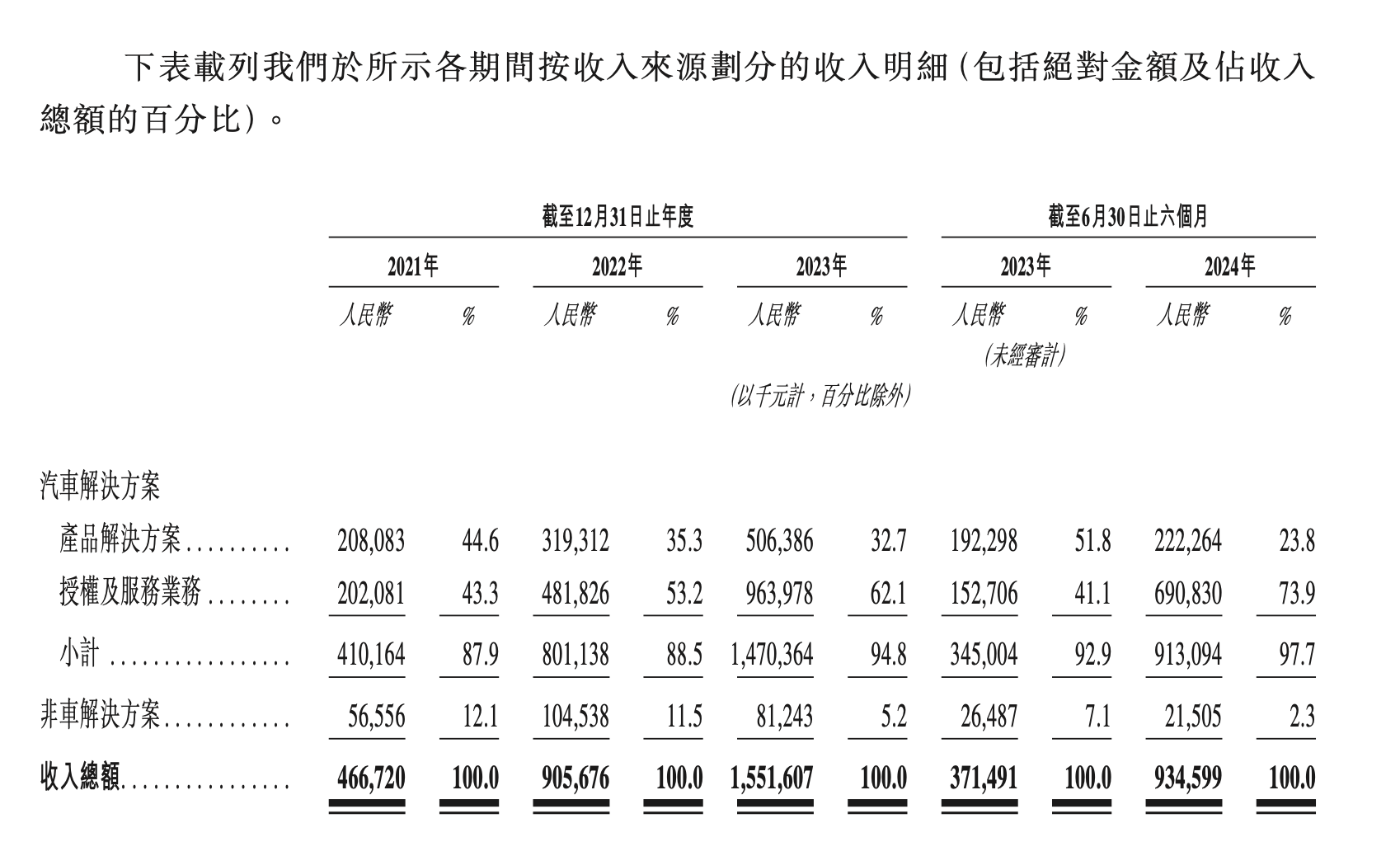 尽管最新招股书显示,地平线的亏损在扩大,但其收入增长迅速。2021年至2023年,地平线的收入分别为4.67亿元、9.06亿元和15.52亿元,复合年增长率为82.3%。今年上半年,地平线实现营收9.35亿元,同比增长151.6%。