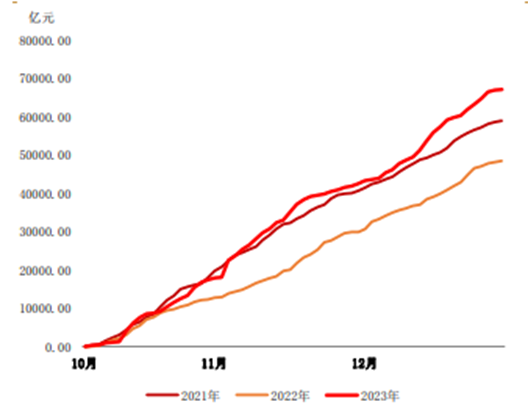 图:2023年10-12月期间同业存单累计发行规模