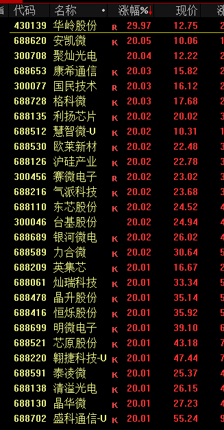 行业板块几乎全线飘红,其中半导体、软件开发、电子化学品、电池、互联网服务、计算机设备、电子元件、仪器仪表、航天航空、消费电子等板块涨幅居前,市场氛围极为热烈,仅旅游酒店板块逆市下跌。
