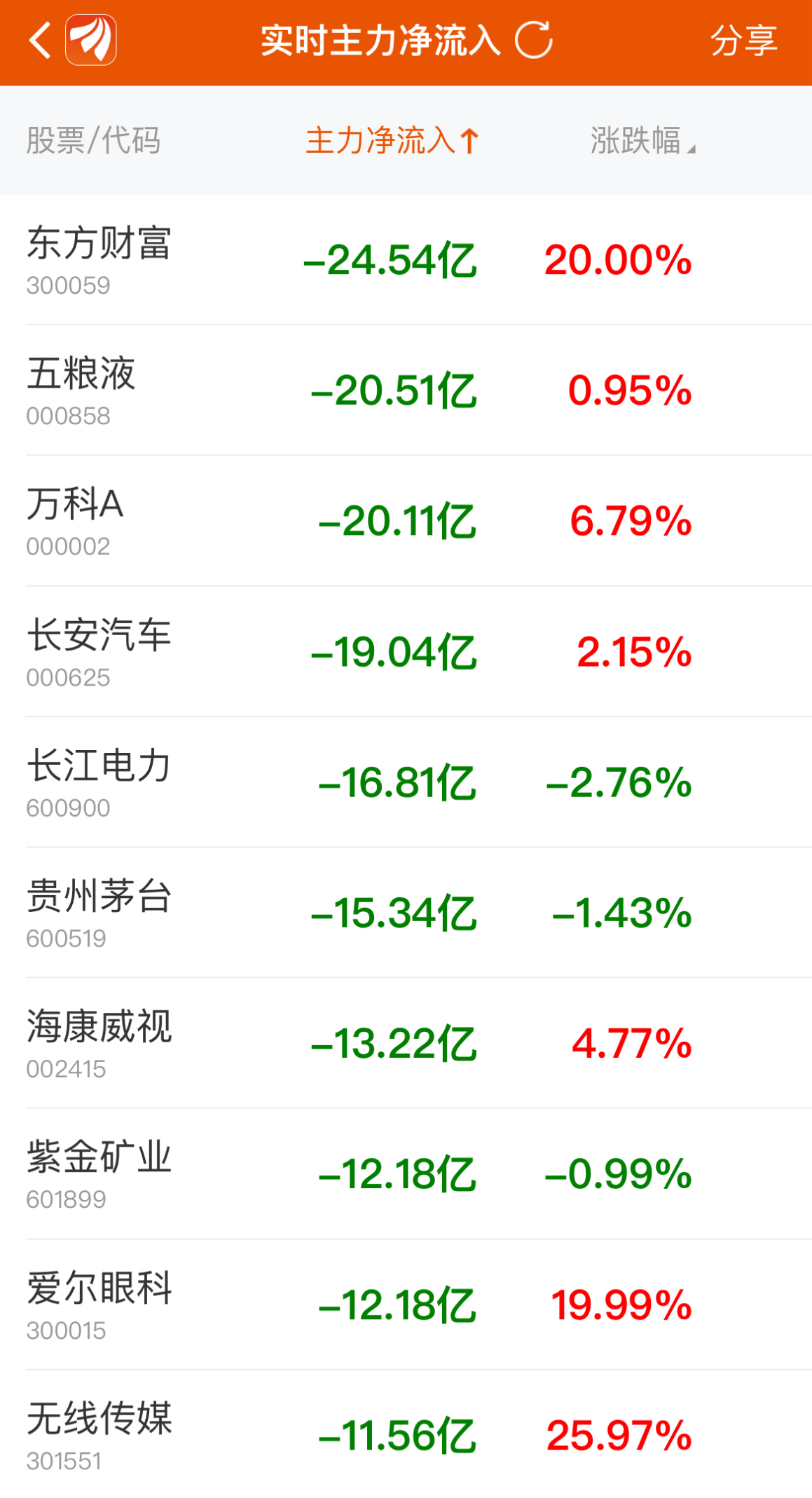东方财富Choice数据显示,10月8日主力净卖出前10大个股中,五粮液和万科A分别位列前茅,主力净卖出额分别为20.51亿元和20.11亿元。