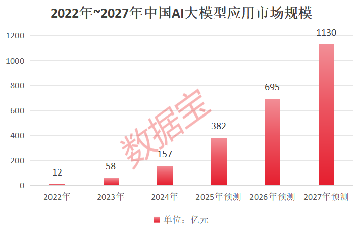 据艾媒咨询数据显示,中国AI大模型市场规模正处于快速发展阶段,预计2026年将突破700亿元大关。第一新声智库研究也表示,2024年AI大模型应用市场规模约为157亿元,而2022年至2027年间,中国AI大模型应用市场规模的复合增长率将达到惊人的148%,至2027年市场规模将达到1130亿元,行业将达到盈利临界点。