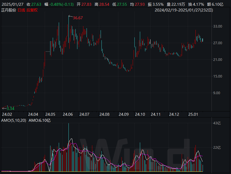 上图为正丹股份在龙年的股价走势图,显示出其强劲的增长势头。