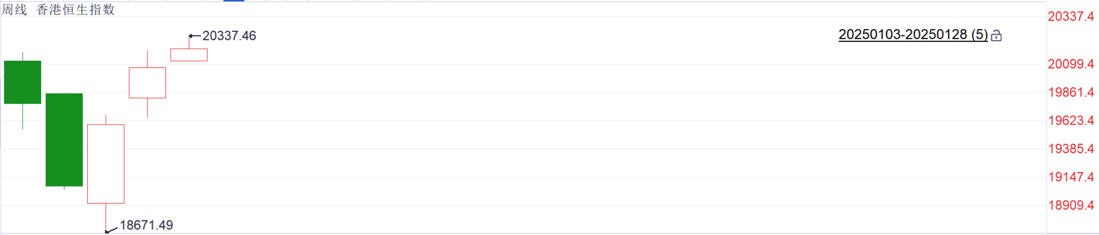 因除夕港股市场下午休市,本周港股交易时间缩短至一天半。截至收盘,恒生指数表现稳健,累计上涨0.79%,报收于20225.11点;科技指数同样表现不俗,累计上涨1.42%,报收4723.63点;国企指数紧随其后,累计上涨0.96%,报收7382.13点。