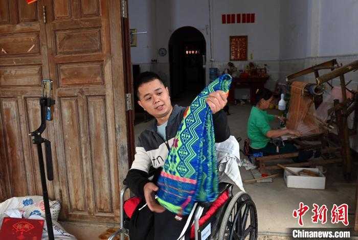 在当地官方的推动下,一批网络达人也积极投身到壮锦的推介中。黄华刚,一位身有残疾的青年,在朋友和家人的鼓励下重拾信心,加入壮锦直播带货的行列。通过直播,他已帮助那莫屯织娘卖出数百条围巾。