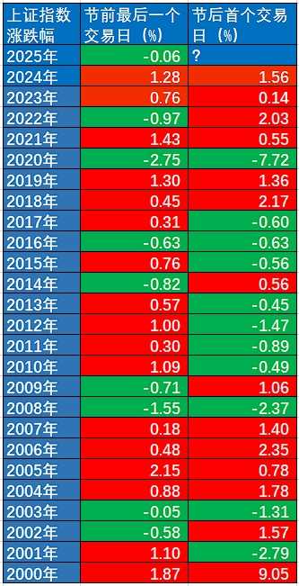 回顾历史,过去25年(2000年~2024年)里,春节前最后一个交易日的行情往往表现不俗。上证指数在25年中有17个年份节前最后一个交易日上涨,深证成指则有16个年份收涨。然而,对于春节后首个交易日的涨跌,则呈现出喜忧参半的局面。上证指数和深证成指在过去25年里,分别有14个和13个年份节后首日收涨。