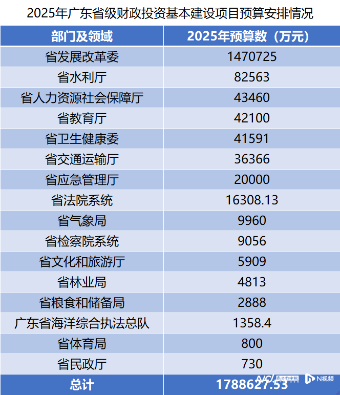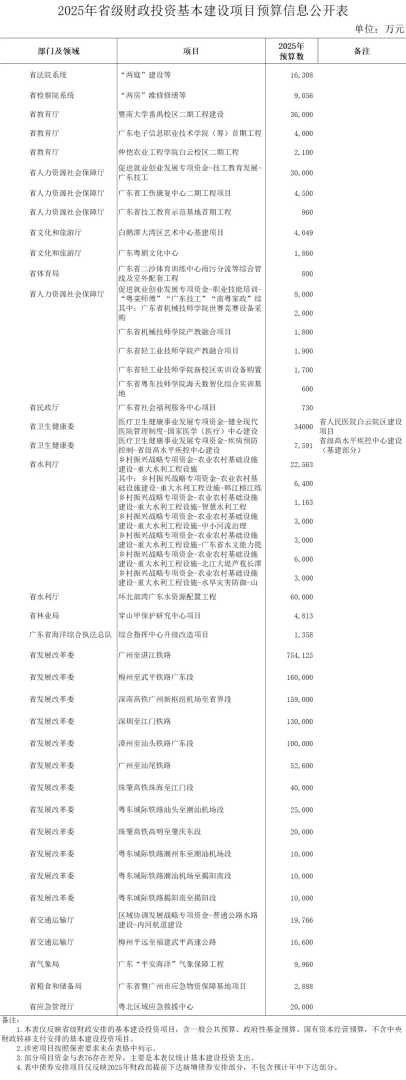 广东省2025年省级财政投资基建预算公布