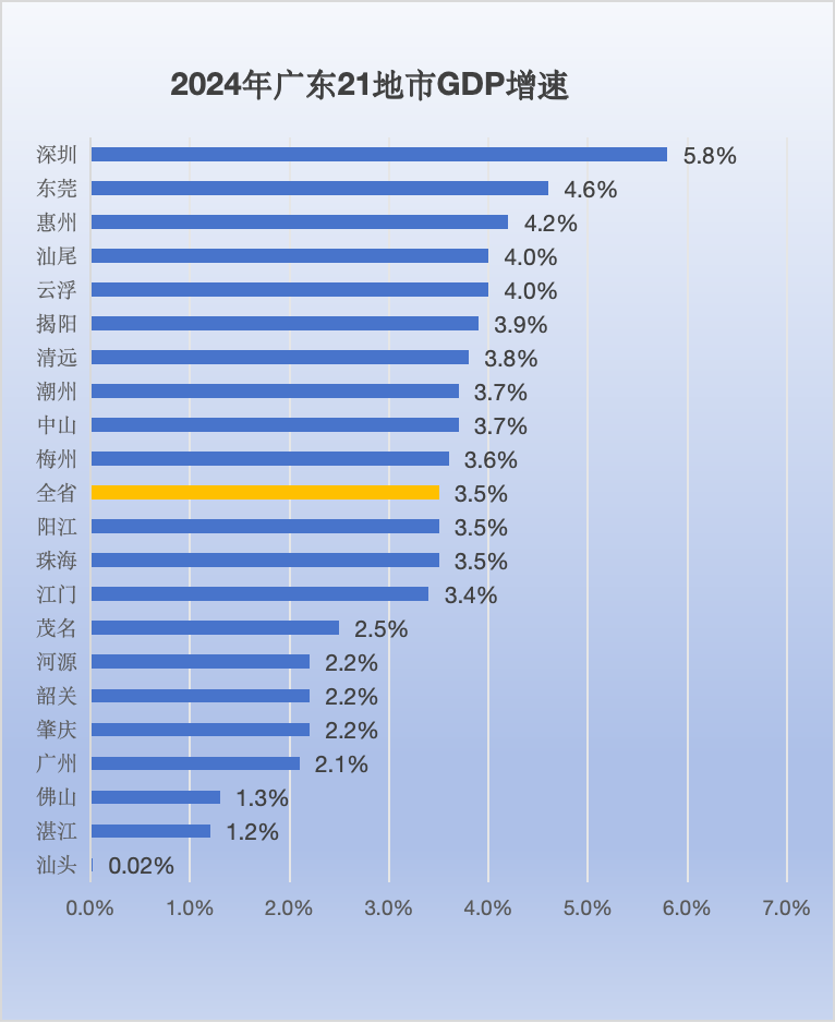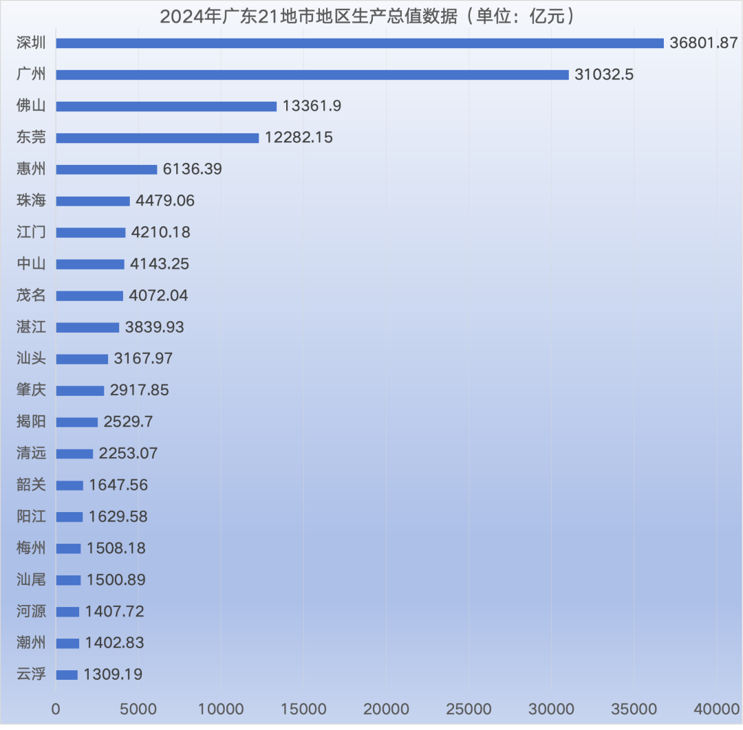 2月8日,广东21个地市2024年经济数据全部出炉。数据显示,广州、深圳、佛山、东莞四个万亿级经济大市的经济总量占全省的六成。同时,惠州、中山和茂名的GDP也分别突破了6000亿元和4000亿元。从增速来看,去年有10个地市经济增速超过全省平均水平。其中,深圳以5.8%的增速位居全省首位,这主要得益于其在工业和外贸等领域的强劲表现。