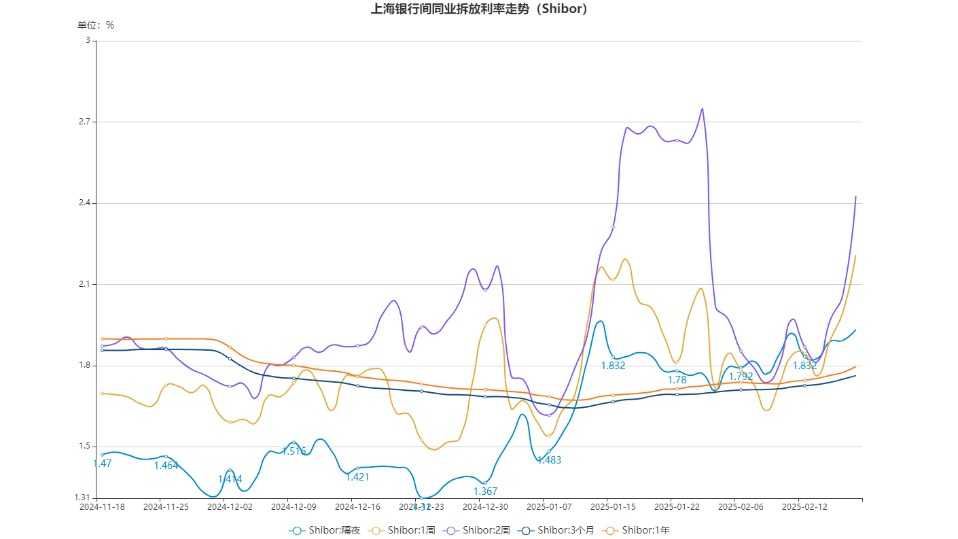 上海银行间同业拆放利率(Shibor)各品种延续涨势,尤其是7天和14天品种。具体来看,隔夜Shibor上涨4.00BP,报1.9330%;7天Shibor上涨21.00BP,报2.2090%;14天Shibor上涨36.20BP,报2.4270%。货币市场利率的变动反映了市场对资金需求的变化。