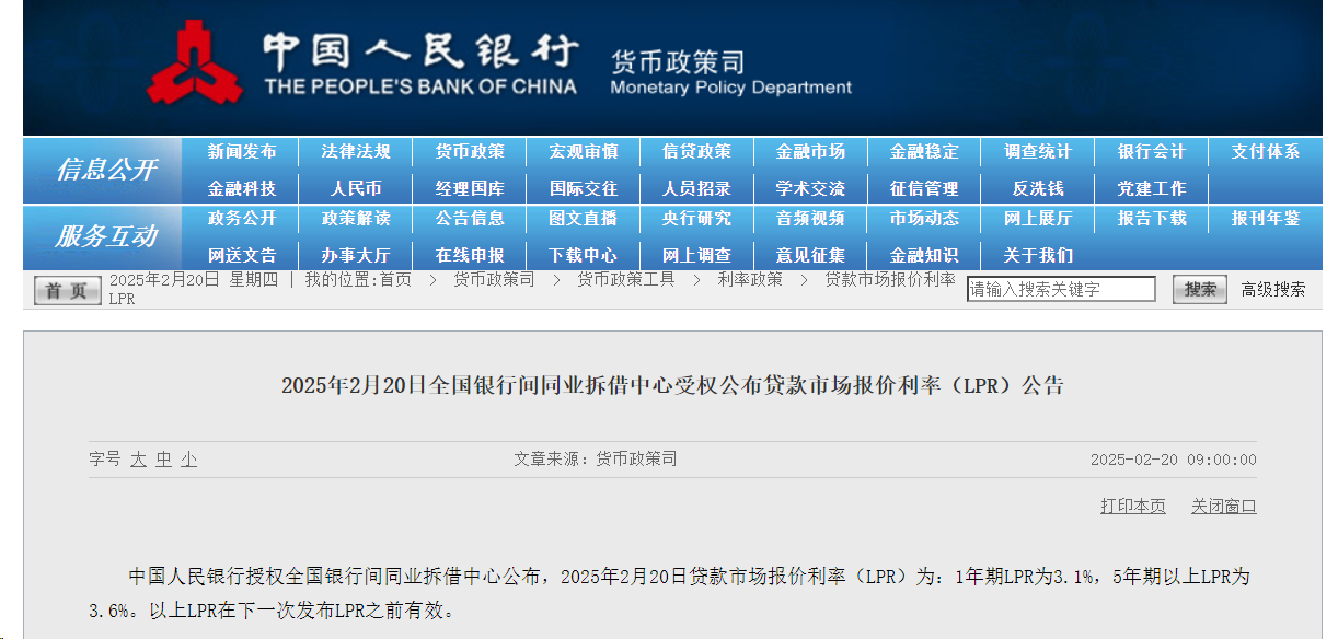 2月20日,中国人民银行授权全国银行间同业拆借中心公布最新贷款市场报价利率(LPR):1年期LPR为3.1%,5年期以上LPR为3.6%,均连续四个月持平。这一利率“按兵不动”符合市场预期,但市场对其年内进一步调降的空间仍充满期待。