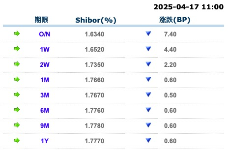 上海银行间同业拆放利率(Shibor)全线小幅回落。具体来看,隔夜Shibor下跌7.40BP,报1.6340%;7天Shibor下跌4.40BP,报1.6520%;14天Shibor下跌2.20BP,报1.7350%,货币市场利率整体呈现下行趋势。