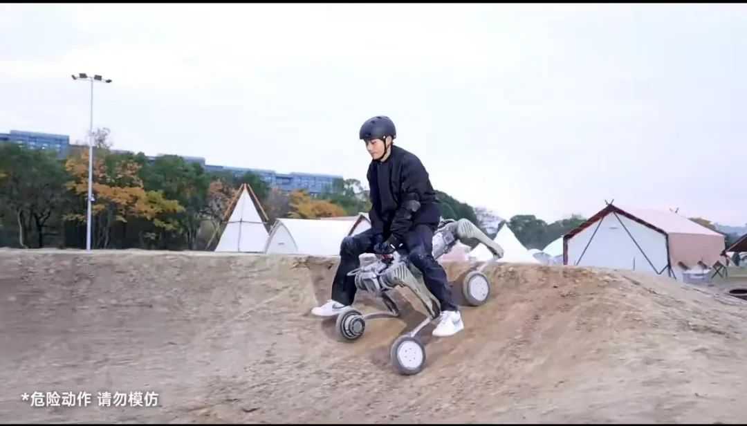Unitree B2-W机器狗还能从2.8米高的楼顶跳下,驮着成年男子前行,展现了其在极端场景中的出色表现。该机器狗重约75kg,具备轮足替换变形能力,最大移动速度可达20km/h,最大水平拉力100kg,性能强劲。