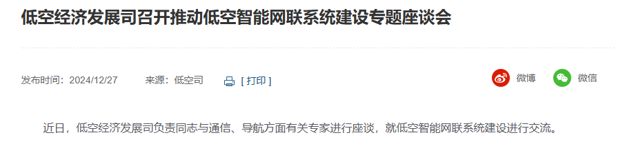 财联社12月27日讯,国家发改委低空经济发展司近日频繁召开座谈会,旨在深入研讨并推动低空经济的全面发展。会上,低空经济发展司的负责同志与来自通信、导航领域的专家进行了深入交流,共同探讨低空智能网联系统的建设路径。
